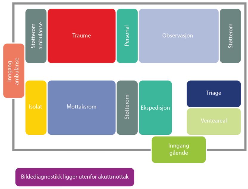 Sykehusbygg anbefaler å unngå å planlegge akuttmottak med enkelkorridorløsning, men enkelkorridor kan i enkelte tilfeller forsvares ved mindre sykehus, der pasientvolum og funksjonsomfang tilsier en mer forenklet organisering av arealene.