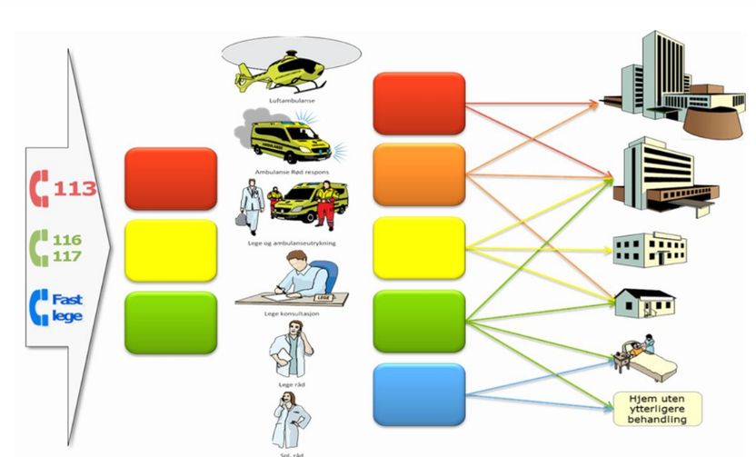 Etter Akuttmedisinforskriften (2015)Akuttmedisinforskriften. Lovdatahttps://lovdata.no/dokument/SF/forskrift/2015-03-20-231 skal kommunene og de regionale helseforetakene sikre en hensiktsmessig og koordinert innsats i de ulike tjenestene i den akuttmedisinske kjeden, og sørge for at innholdet i disse tjenestene er samordnet med de øvrige nødetatene, hovedredningssentralene og andre myndigheter slik at befolkningen ved behov for øyeblikkelig hjelp, mottar forsvarlige og koordinerte akuttmedisinske tjenester utenfor sykehus.